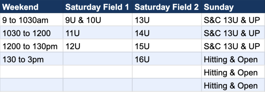 -Additional Weekday and Weekend Training Modules will be added once all teams are set